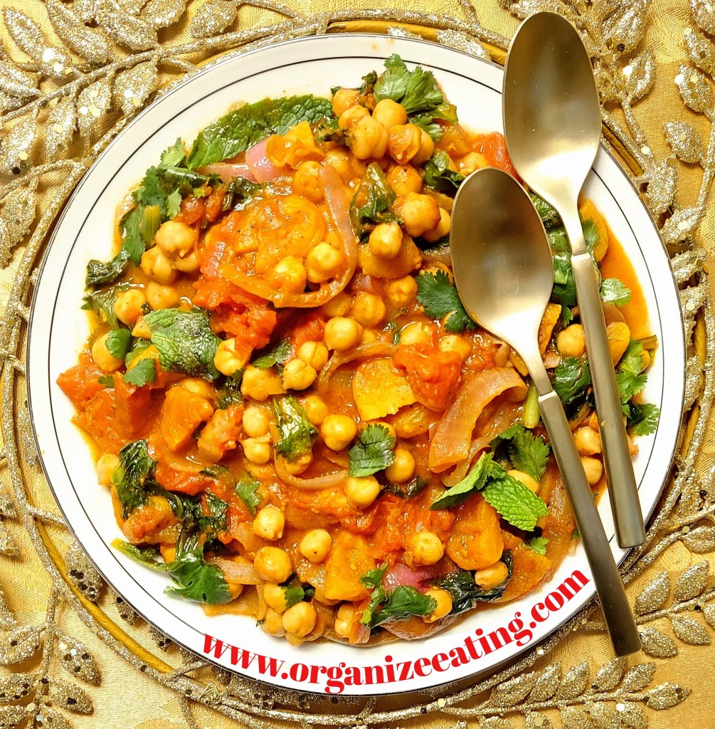 The greens in this stew include: mint leaves, cilantro and spinach, another option is escarole lettuce. This dish will brighten up your kitchen, meal time and the winter season. The recipe is from my cookbook: “Organize Eating: A Cookbook for Transitioning to Plant-Based Meals” page 144.