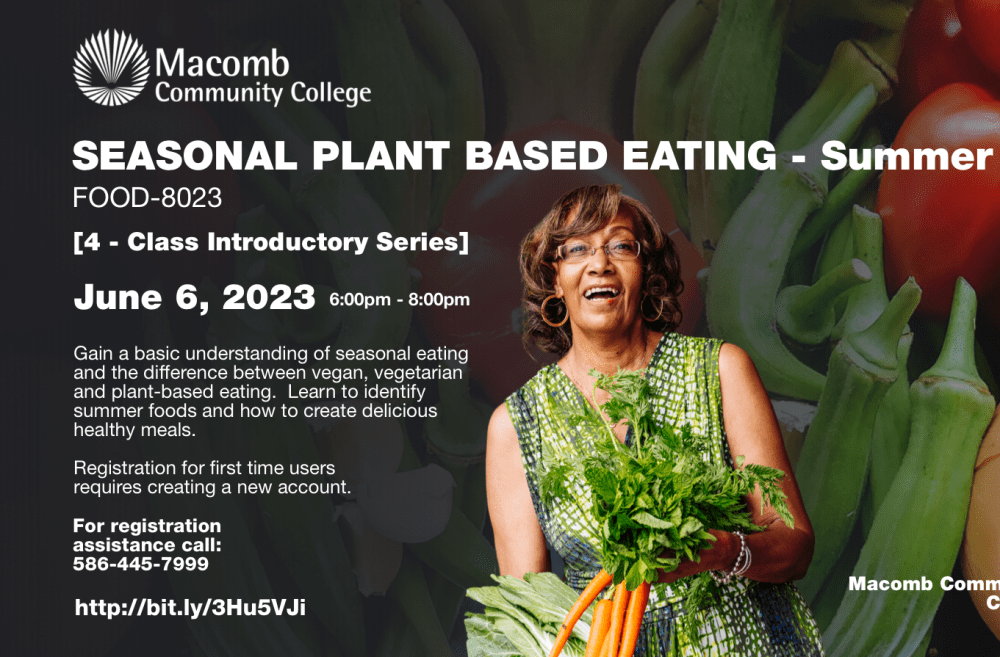 Are you ready to embark on a culinary adventure that celebrates the vibrant flavors of summer? Join us at Macomb CC for our highly anticipated Seasonal Plant-based Eating-Summer class. We will unlock the bountiful wonders of a healthy plant-based summer harvest.
